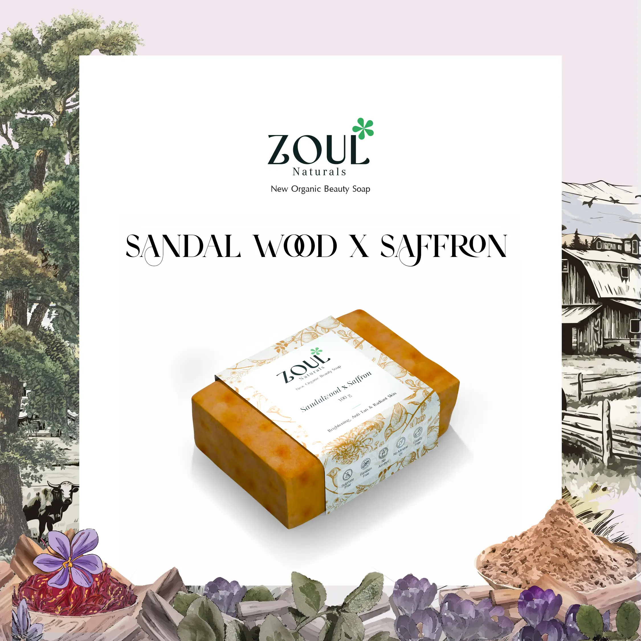Zoul Naturals’ Sandalwood + Saffron Soap brings together the regal combination of sandalwood, saffron, and honey. Every dermatologist and Skincare Specialists Appreciate the anti-inflammatory properties of sandalwood, the brightening effects of saffron, and the soothing touch of honey. This Magical Soap offers a luxurious skincare ritual for promoting even-toned, healthy, and radiant skin.